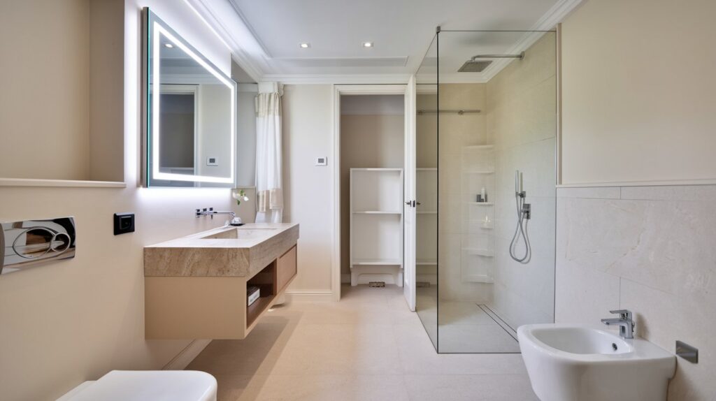 Băile moderne cu mobilă suspendată oferă eleganță, spațiu suplimentar și funcționalitate, transformând orice baie într-un spațiu aerisit și practic, ideal pentru amenajări contemporane și organizare eficientă.