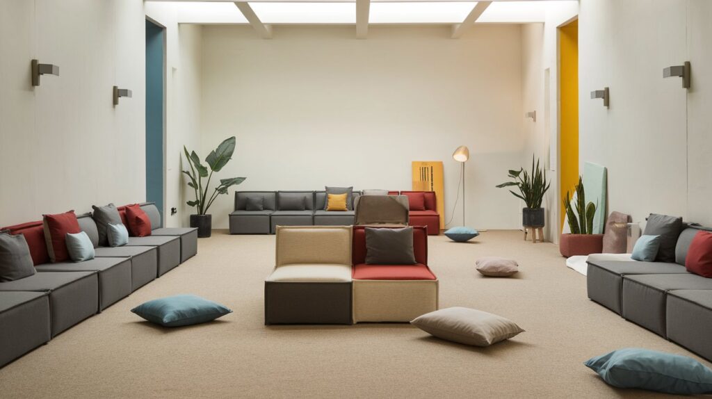 Un alt aspect important: modulele individuale sunt mult mai ușor de aspirat sau curățat sub ele, comparativ cu o canapea clasică. Aceasta reduce acumularea de praf și alergeni în casă.